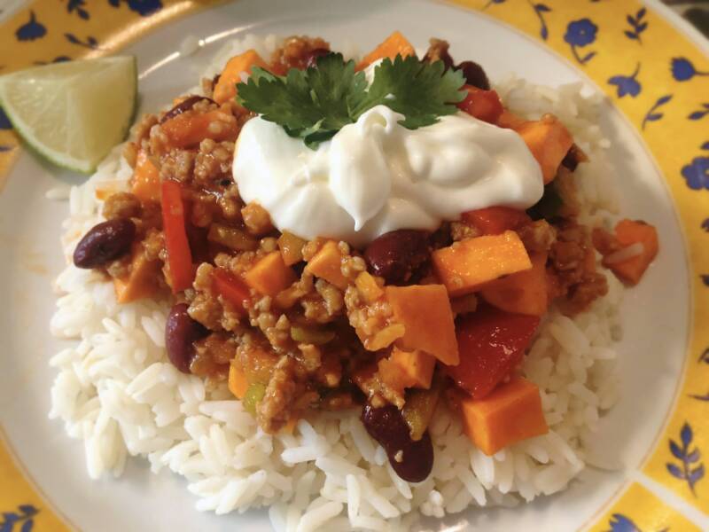 Chili Con Carne is een Mexicaanse gerecht dat letterlijk betekend 'chili met vlees' is een Mexicaanse klassieker die ondertussen bekend is over de ganse wereld. Ik heb er mijn eigen versie van gemaakt met zoete aardappel. Mijn versie is licht pikant, maar je kan uiteraard de hoeveelheid van je kruiden aanpassen aan jouw spicy-voorkeur.